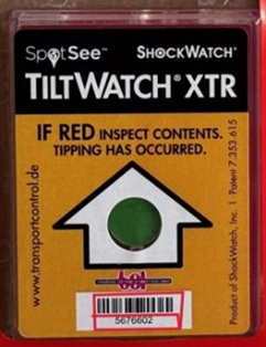 | IKKE OK | Synlige skader på kassen. Maskinen har ligget ned/væltet. Tiltwatch-label viser RØD. | 1. Accepter kun leveringen med forbehold. 2. Skriv "Skadet emballage" / "Damaged Package" på fragtbrevet. 3. Kontakt Epson support øjeblikkeligt. | ![]() |